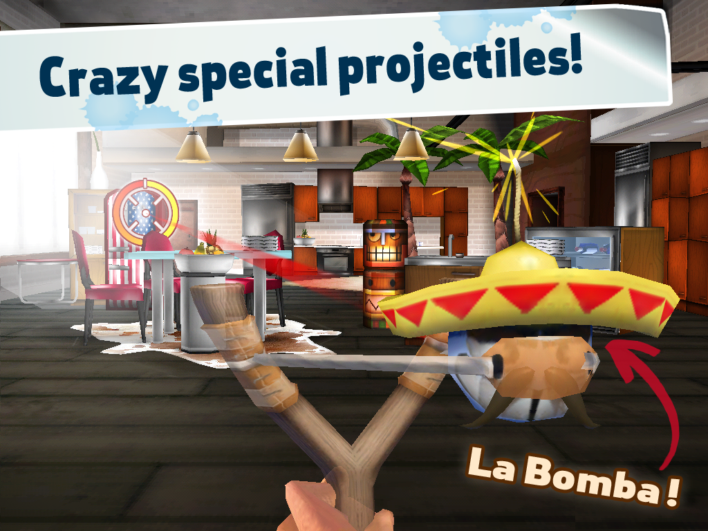 • Upgrade your slingshot and find special projectiles to cause even more damage!